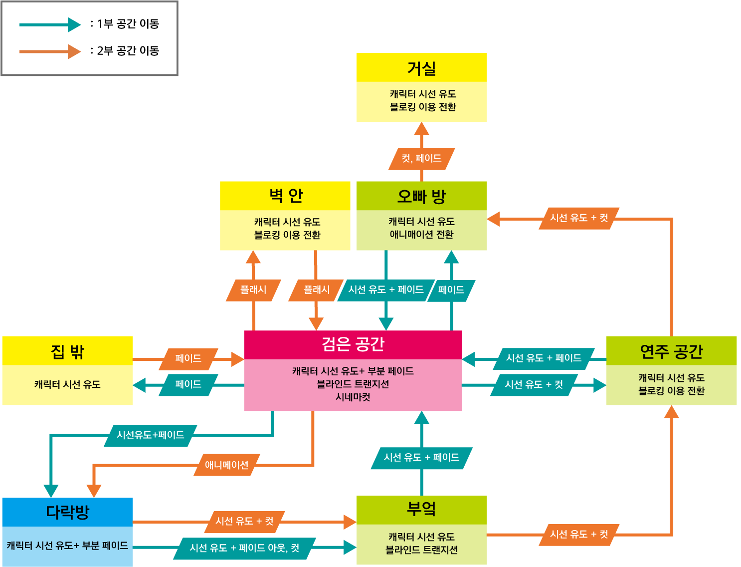 전환 방식은 서사의 특성과 공간적 맥락에 따라