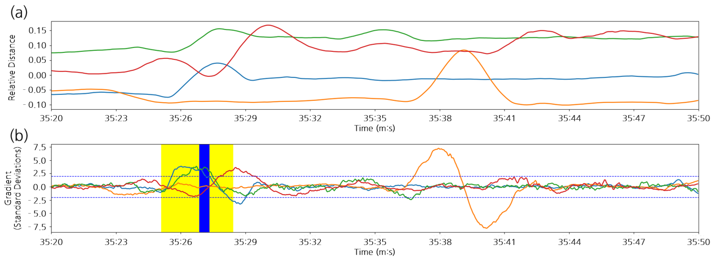 지표에서 계산된 동시 기울임 행동을 기반으로 그룹