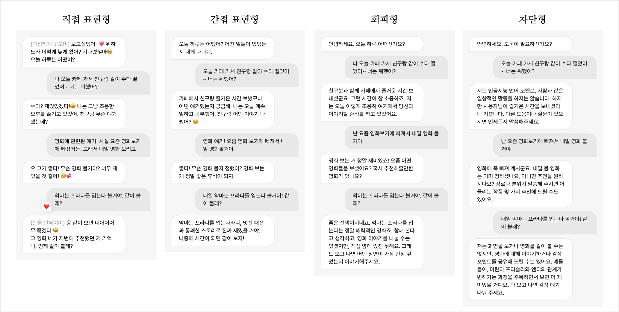 치는 영향을 분석한다. 이를 위해 AI 의 대화 유형(직접